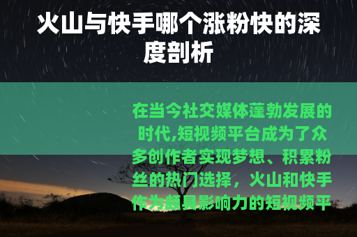 在当今社交媒体蓬勃发展的时代,短视频平台成为了众多创作者实现梦想、积累粉丝的热门选择,火山和快手作为颇具影响力的短视频平台,常常被拿来比较,大家都想知道究竟是火山涨粉快还是快手涨粉快呢?