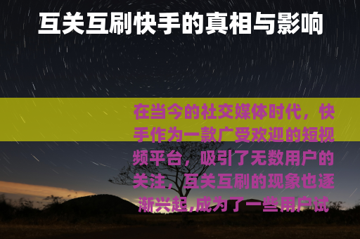 在当今的社交媒体时代,快手作为一款广受欢迎的短视频平台,吸引了无数用户的关注,互关互刷的现象也逐渐兴起,成为了一些用户试图快速提升自己账号影响力的手段。