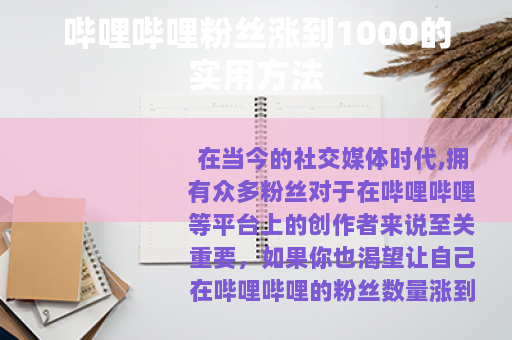 在当今的社交媒体时代,拥有众多粉丝对于在哔哩哔哩等平台上的创作者来说至关重要,如果你也渴望让自己在哔哩哔哩的粉丝数量涨到1000,那么以下这些方法或许能助你一臂之力。