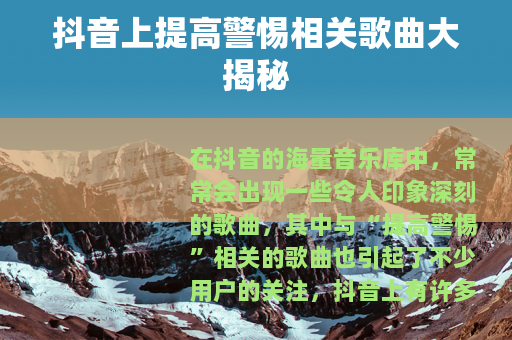 在抖音的海量音乐库中,常常会出现一些令人印象深刻的歌曲,其中与“提高警惕”相关的歌曲也引起了不少用户的关注。