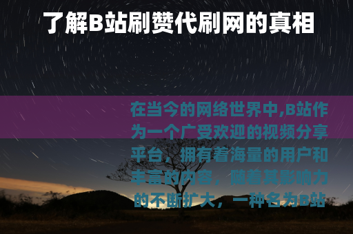 了解B站刷赞代刷网的真相