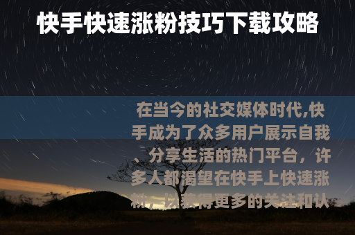 在当今的社交媒体时代,快手成为了众多用户展示自我、分享生活的热门平台,许多人都渴望在快手上快速涨粉,以获得更多的关注和认可,我们就来为大家分享一些实用的快手快速涨粉技巧,帮助你在快手上脱颖而出。