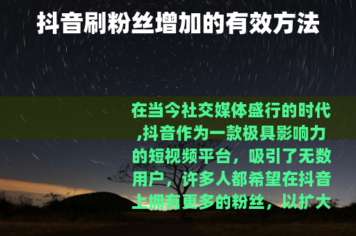 在当今社交媒体盛行的时代,抖音作为一款极具影响力的短视频平台,吸引了无数用户,许多人都希望在抖音上拥有更多的粉丝,以扩大自己的影响力和获得更多的关注,抖音怎么刷粉丝增加呢?以下是一些切实可行的方法。