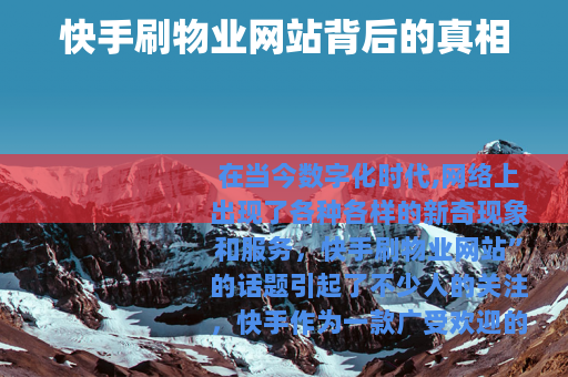 快手刷物业网站背后的真相