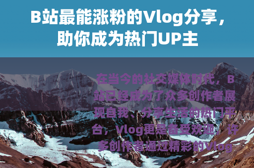 在当今的社交媒体时代,B站已经成为了众多创作者展现自我、分享生活的热门平台,Vlog更是备受欢迎,许多创作者通过精彩的Vlog吸引了大量粉丝,实现了自己的创作梦想,就来给大家分享一些关于B站最能涨粉的Vlog的经验和技巧。 是关键,一个吸引人的Vlog需要有独特的主题和有趣的故事,你可以选择分享自己的旅行经历,带观众领略不同地方的风土人情;或者记录自己学习一项新技能的过程,让观众感受到成长和进步的喜悦;亦或是分享日常生活中的点滴趣事,引发观众的共鸣,要确保你的Vlog内容能够让观众产生兴趣,想要一直看下去。