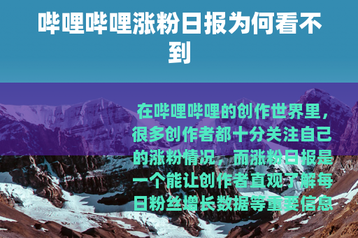 在哔哩哔哩的创作世界里,很多创作者都十分关注自己的涨粉情况,而涨粉日报是一个能让创作者直观了解每日粉丝增长数据等重要信息的工具,不少创作者会遇到一个困扰,那就是哔哩哔哩涨粉日报怎么看不到呢?