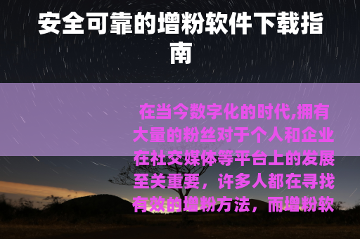 在当今数字化的时代,拥有大量的粉丝对于个人和企业在社交媒体等平台上的发展至关重要,许多人都在寻找有效的增粉方法,而增粉软件成为了不少人的选择。