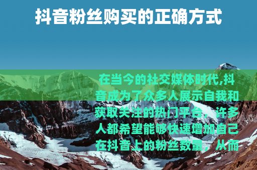 在当今的社交媒体时代,抖音成为了众多人展示自我和获取关注的热门平台,许多人都希望能够快速增加自己在抖音上的粉丝数量,从而提升自己的影响力和知名度,抖音里粉丝怎么买呢?