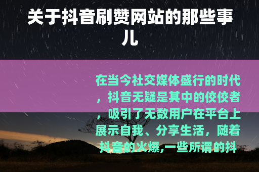 在当今社交媒体盛行的时代,抖音无疑是其中的佼佼者,吸引了无数用户在平台上展示自我、分享生活,随着抖音的火爆,一些所谓的抖音刷赞网站也悄然出现。
