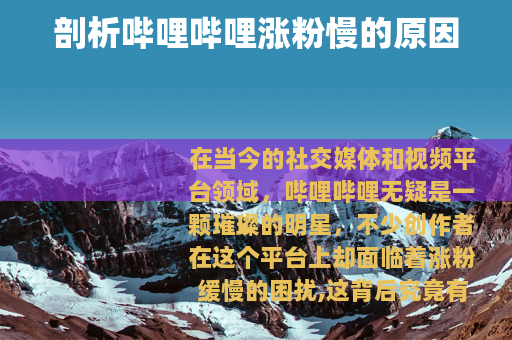 在当今的社交媒体和视频平台领域,哔哩哔哩无疑是一颗璀璨的明星,不少创作者在这个平台上却面临着涨粉缓慢的困扰,这背后究竟有着怎样的原因呢?