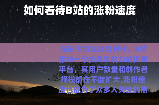 在当今的互联网时代,B站作为一个极具影响力的视频平台,其用户数量和创作者规模都在不断扩大,涨粉速度也成为了众多人关注的焦点。