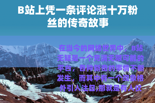 在当今的网络世界中,B站无疑是一个充满无限可能的平台,各种新奇的事情不断发生,而其中有一个现象格外引人注目,那就是有人仅凭借一条评论就涨了十万粉丝。