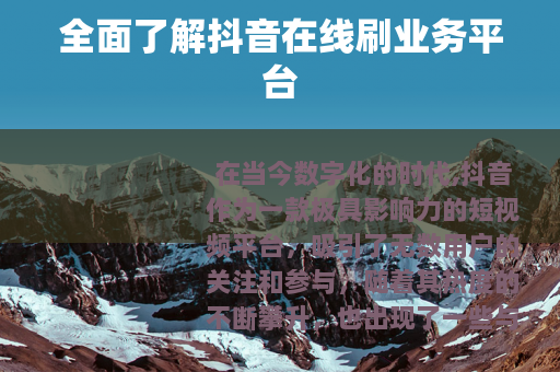 在当今数字化的时代,抖音作为一款极具影响力的短视频平台,吸引了无数用户的关注和参与,随着其热度的不断攀升,也出现了一些与之相关的所谓抖音在线刷业务平台。