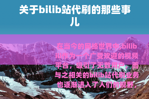 在当今的网络世界中,bilibili作为一个广受欢迎的视频平台,吸引了无数用户,而与之相关的bilib站代刷业务也逐渐进入了人们的视野。
