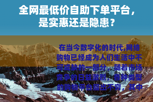 在当今数字化的时代,网络购物已经成为人们生活中不可或缺的一部分,随着市场竞争的日益激烈,各种类型的购物平台层出不穷,其中全网最低价自助下单平台吸引了不少消费者的目光。