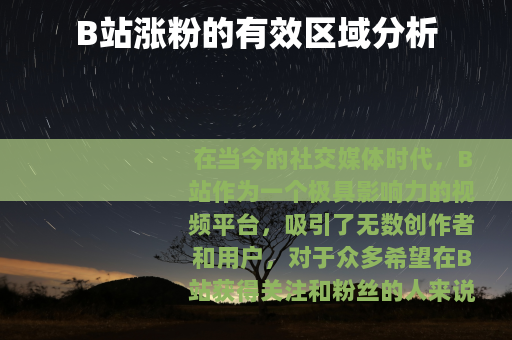 在当今的社交媒体时代,B站作为一个极具影响力的视频平台,吸引了无数创作者和用户,对于众多希望在B站获得关注和粉丝的人来说,了解B站涨粉的区是非常关键的。