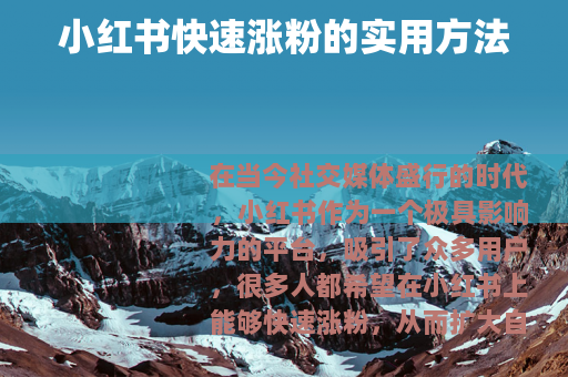 在当今社交媒体盛行的时代,小红书作为一个极具影响力的平台,吸引了众多用户,很多人都希望在小红书上能够快速涨粉,从而扩大自己的影响力和社交圈,以下是一些小红书快速涨粉的有效方法。
