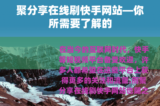 在当今的互联网时代,快手等短视频平台备受欢迎,许多人都希望在这些平台上获得更多的关注和流量,而聚分享在线刷快手网站也随之出现在大众的视野中。