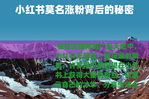 在社交媒体的广阔天地中,小红书无疑是一颗璀璨的明星,许多用户都渴望在小红书上获得大量的粉丝,以展示自己的才华、分享生活点滴或推广自己的产品与服务,有时会出现一种令人惊喜又疑惑的情况——小红书莫名涨粉。