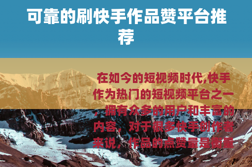 在如今的短视频时代,快手作为热门的短视频平台之一,拥有众多的用户和丰富的内容,对于很多快手创作者来说,作品的点赞量是衡量其受欢迎程度的一个重要指标,有没有一些靠谱的刷快手作品刷赞的平台呢?