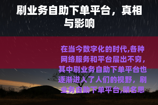 在当今数字化的时代,各种网络服务和平台层出不穷,其中刷业务自助下单平台也逐渐进入了人们的视野。