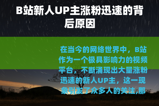 在当今的网络世界中,B站作为一个极具影响力的视频平台,不断涌现出大量涨粉迅速的新人UP主,这一现象引发了众多人的关注,那么究竟是什么原因使得B站新人UP主能够如此快速地吸引粉丝呢?