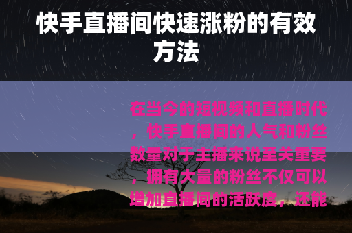 在当今的短视频和直播时代,快手直播间的人气和粉丝数量对于主播来说至关重要,拥有大量的粉丝不仅可以增加直播间的活跃度,还能为主播带来更多的商业机会和收益,如何在快手直播间实现自动涨粉呢?本文将为您详细介绍一些实用的方法。