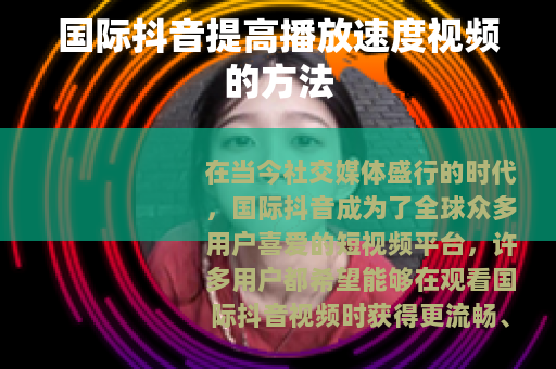 在当今社交媒体盛行的时代,国际抖音成为了全球众多用户喜爱的短视频平台,许多用户都希望能够在观看国际抖音视频时获得更流畅、更快的播放速度体验,以下是一些可以帮助你提高国际抖音播放速度视频的有效方法。
