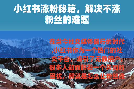 在当今社交媒体盛行的时代,小红书作为一个热门的社交平台,吸引了无数用户,很多人却面临着一个共同的困扰,那就是怎么让粉丝涨得快,自己在小红书上却不涨粉丝呢?我们就来一起探讨一下这个问题,寻找有效的解决办法。
