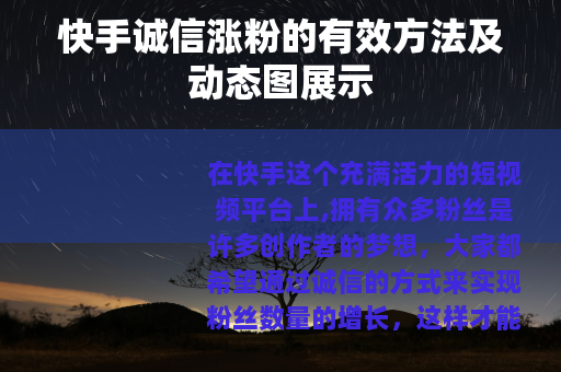 在快手上,诚信涨粉是一条可持续发展的道路,只有通过不断努力,提供有价值的内容,积极与观众互动,合理利用平台功能,才能真正实现粉丝数量的稳步增长,在这个竞争激烈的短视频领域中脱颖而出,打造出属于自己的个人品牌和影响力。