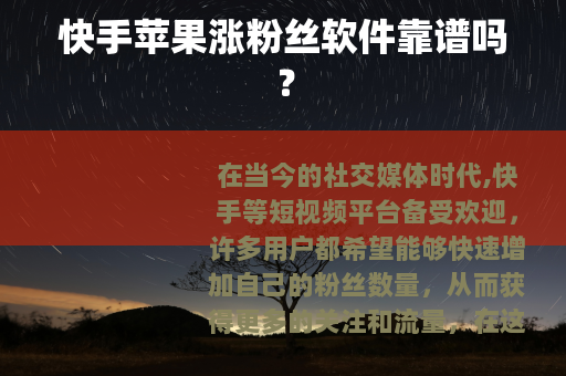 在当今的社交媒体时代,快手等短视频平台备受欢迎,许多用户都希望能够快速增加自己的粉丝数量,从而获得更多的关注和流量,在这种需求下,一些声称可以帮助苹果用户在快手上涨粉丝的软件开始出现。