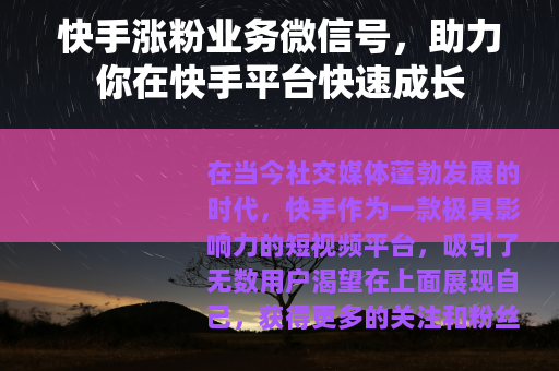 在当今社交媒体蓬勃发展的时代,快手作为一款极具影响力的短视频平台,吸引了无数用户渴望在上面展现自己,获得更多的关注和粉丝,而快手涨粉业务微信号的出现,为许多有涨粉需求的用户提供了一条可能的途径。