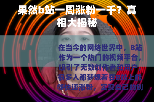 在当今的网络世界中,B站作为一个热门的视频平台,吸引了无数创作者和用户,很多人都梦想着在B站上能够快速涨粉,实现自己的创作价值和影响力,当听到诸如“果然b站一周涨粉一千”这样的说法时,大家往往会充满好奇和期待,想要一探究竟。
