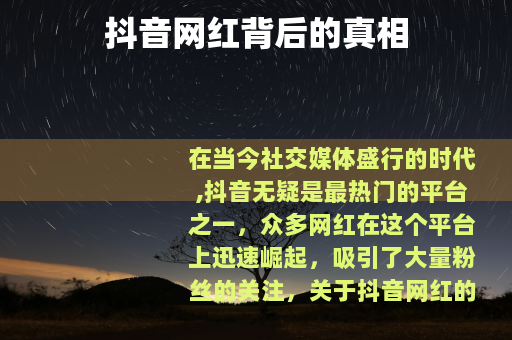 在当今社交媒体盛行的时代,抖音无疑是最热门的平台之一,众多网红在这个平台上迅速崛起,吸引了大量粉丝的关注,关于抖音网红的一些现象却引发了人们的广泛讨论。