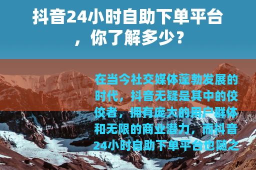 在当今社交媒体蓬勃发展的时代,抖音无疑是其中的佼佼者,拥有庞大的用户群体和无限的商业潜力,而抖音24小时自助下单平台也随之应运而生,为众多用户提供了便利的服务。