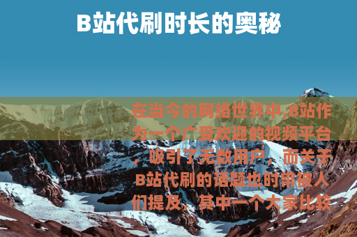 在当今的网络世界中,B站作为一个广受欢迎的视频平台,吸引了无数用户,而关于B站代刷的话题也时常被人们提及,其中一个大家比较关心的问题就是B站代刷要多久。