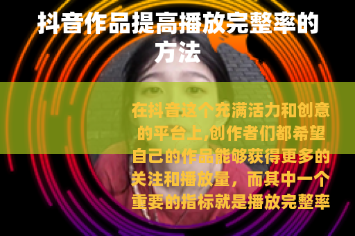 在抖音这个充满活力和创意的平台上,创作者们都希望自己的作品能够获得更多的关注和播放量,而其中一个重要的指标就是播放完整率,抖音作品怎样提高播放完整率呢? 的吸引力是关键,一个好的开头能够迅速抓住用户的眼球,让他们产生继续观看的兴趣,可以通过设置悬念、提出有趣的问题或者展示精彩的片段等方式,在视频的开头几秒钟内就吸引住观众,如果你是一个美食博主,可以在开头展示一道令人垂涎欲滴的美食成品,然后再逐步介绍制作过程,这样就能激发观众的好奇心,促使他们想要看完整个视频,了解这道美食是如何制作出来的。