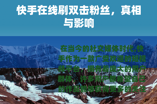 在当今的社交媒体时代,快手作为一款广受欢迎的短视频平台,拥有着庞大的用户群体,许多用户都希望自己的作品能够获得更多的关注和双击,也就是点赞,从而提高自己的知名度和影响力,这也使得一些人开始关注所谓的“快手在线刷双击粉丝”服务。