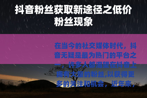 在当今的社交媒体时代,抖音无疑是最为热门的平台之一,许多人都渴望在抖音上拥有大量的粉丝,以获得更多的关注和机会。