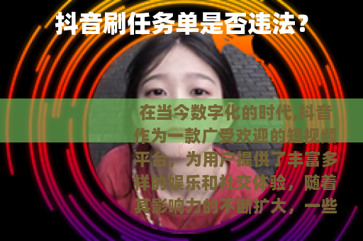 在当今数字化的时代,抖音作为一款广受欢迎的短视频平台,为用户提供了丰富多样的娱乐和社交体验,随着其影响力的不断扩大,一些与之相关的新现象也逐渐引发了人们的关注,其中就包括抖音刷任务单这一行为。