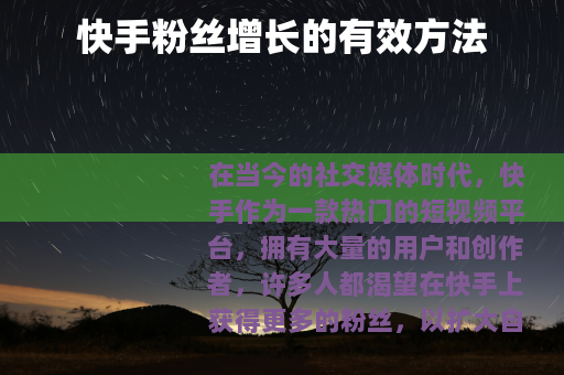 在当今的社交媒体时代,快手作为一款热门的短视频平台,拥有大量的用户和创作者,许多人都渴望在快手上获得更多的粉丝,以扩大自己的影响力和实现各种目标,快手粉丝是如何涨得呢?