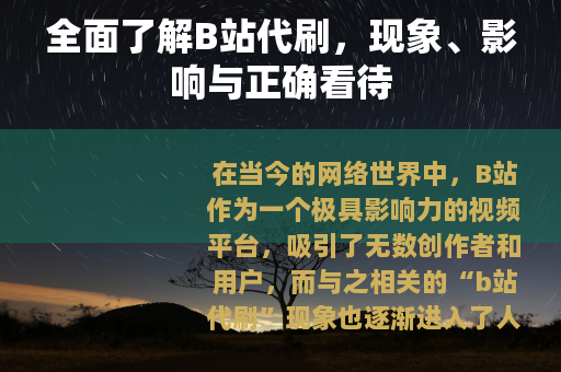 在当今的网络世界中,B站作为一个极具影响力的视频平台,吸引了无数创作者和用户,而与之相关的“b站代刷”现象也逐渐进入了人们的视野。