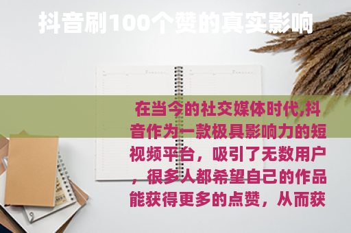 在当今的社交媒体时代,抖音作为一款极具影响力的短视频平台,吸引了无数用户,很多人都希望自己的作品能获得更多的点赞,从而获得更多的关注和流量,就有人会想,如果在抖音刷100个赞会怎样呢?