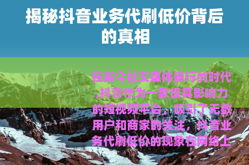 在当今社交媒体盛行的时代,抖音作为一款极具影响力的短视频平台,吸引了无数用户和商家的关注,抖音业务代刷低价的现象在网络上悄然兴起,许多人对此充满了好奇,想知道这背后究竟是怎样的一种情况。