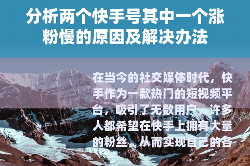 在当今的社交媒体时代,快手作为一款热门的短视频平台,吸引了无数用户,许多人都希望在快手上拥有大量的粉丝,从而实现自己的各种目标,比如分享生活、推广产品或展示才艺等,不少人会发现自己有两个快手号,但其中一个的涨粉速度却非常缓慢,这究竟是怎么回事呢?
