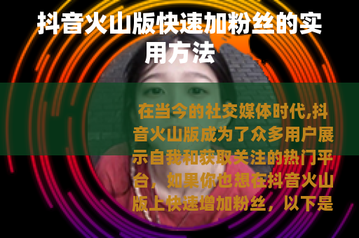 在当今的社交媒体时代,抖音火山版成为了众多用户展示自我和获取关注的热门平台,如果你也想在抖音火山版上快速增加粉丝,以下是一些实用的方法可供参考。