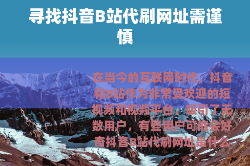 在当今的互联网时代,抖音和B站作为非常受欢迎的短视频和视频平台,吸引了无数用户,有些用户可能会好奇抖音B站代刷网址是什么,希望通过代刷来提升自己在平台上的数据,比如点赞数、粉丝量等。