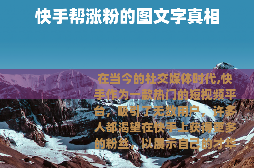 在当今的社交媒体时代,快手作为一款热门的短视频平台,吸引了无数用户,许多人都渴望在快手上获得更多的粉丝,以展示自己的才华或推广自己的产品与服务,一种所谓的“快手帮涨粉图文字”的现象逐渐兴起。
