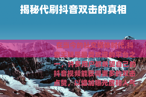 在当今的社交媒体时代,抖音无疑是最受欢迎的平台之一,许多用户都希望自己的抖音视频能获得更多的双击点赞,以增加曝光度和人气,市场上出现了所谓的代刷秒刷抖音双击的服务。
