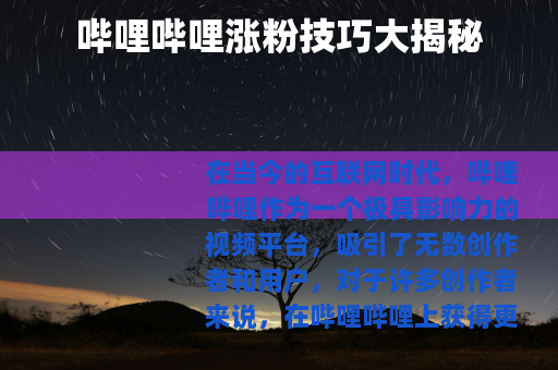 在当今的互联网时代,哔哩哔哩作为一个极具影响力的视频平台,吸引了无数创作者和用户,对于许多创作者来说,在哔哩哔哩上获得更多粉丝是他们努力的目标之一,有哪些有效的哔哩哔哩涨粉技巧呢? 质量是关键,要确保你的视频内容具有独特性和吸引力,无论是有趣的搞笑视频、专业的知识讲解,还是精彩的剧情短片,都要让观众在观看后能有所收获或感到愉悦,投入足够的时间和精力去策划、拍摄和剪辑,力求呈现出高质量的作品,这样才能让观众愿意关注你并持续观看你的视频。